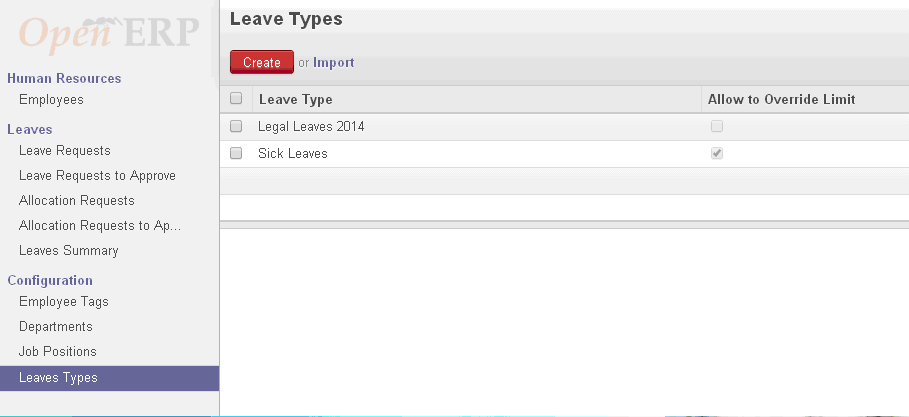 1. Set up the Leave Type at OpenERP.