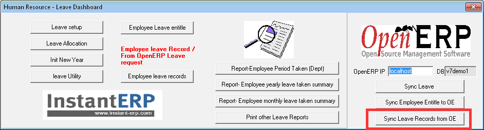 7. Synchronize the leave result from OpenERP to Instant-Payroll.