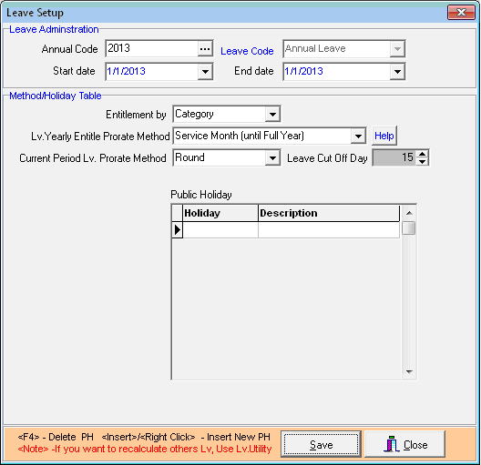 3. Set up the leave details at Instant-Payroll (e.g. leave grouping). Allocate the number of leave days for each leave type.
