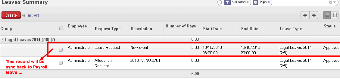 5. Synchronize the leave entitlement to OpenERP.